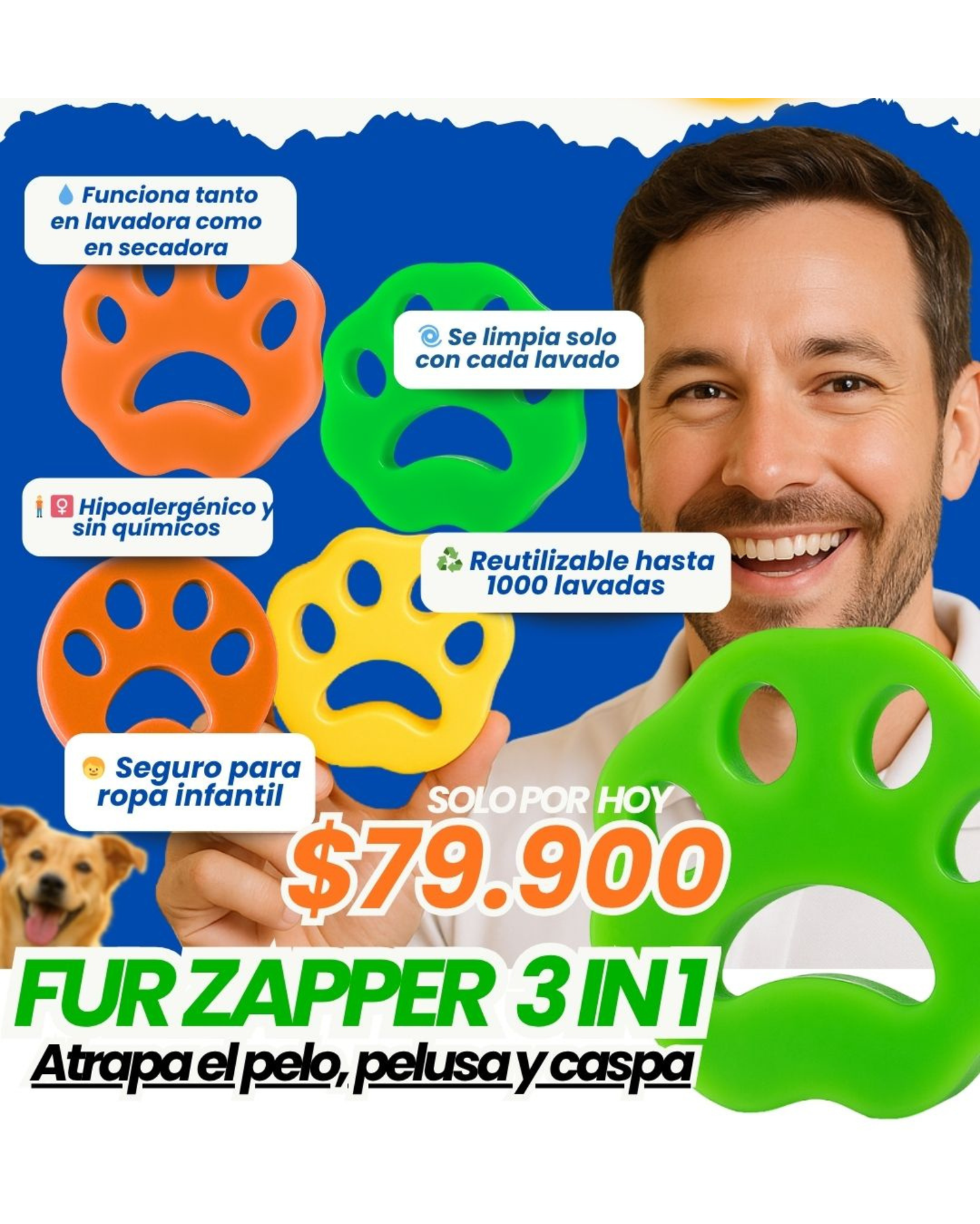 Los Golden botan pelo como si lo fabricaran. El FurZapper me ha servido un montón especialmente con las cobijas del perro. Antes quedaban llenas de pelo incluso después del lavado, ahora salen con un 70% menos. Vale la pena.